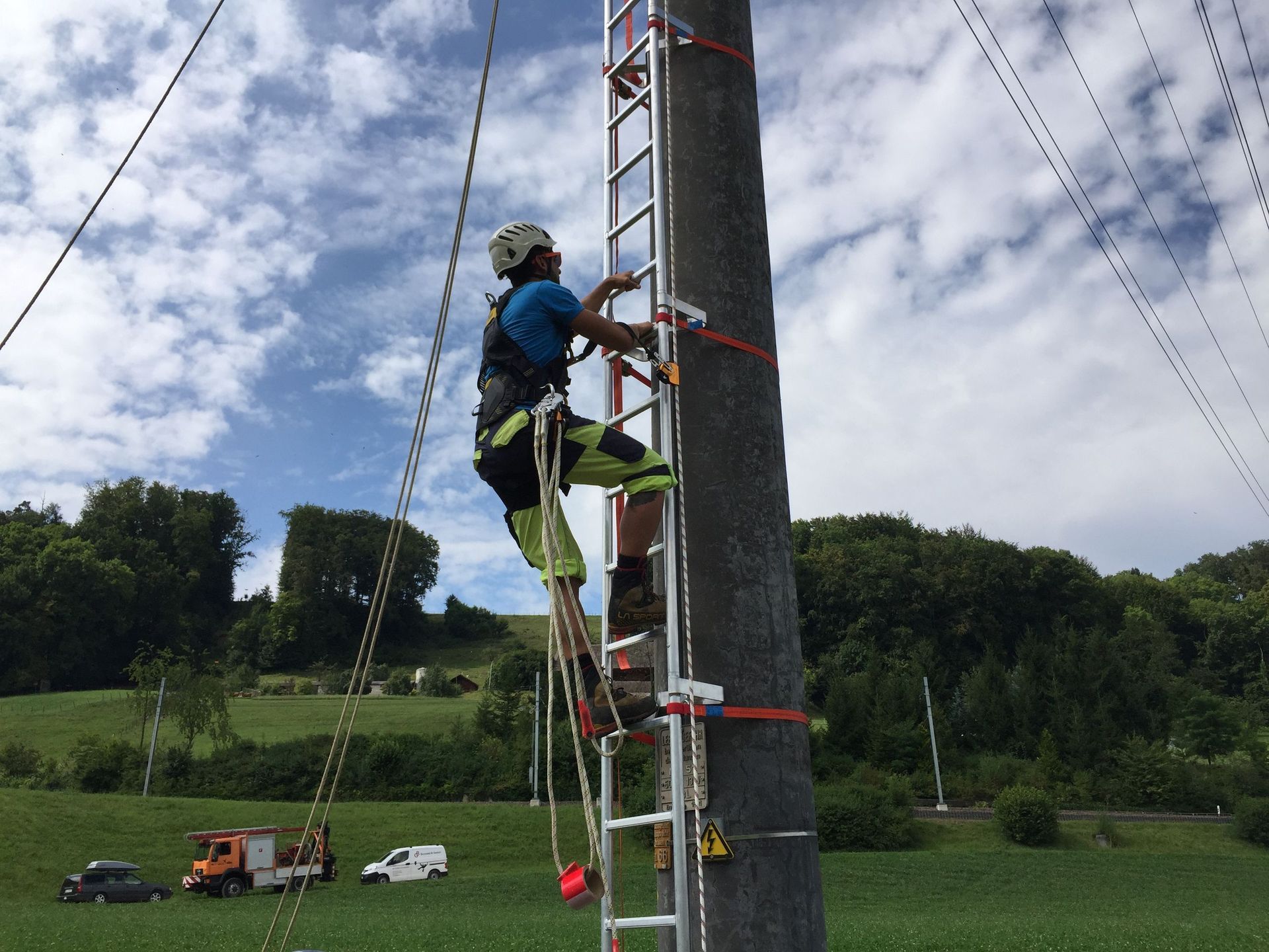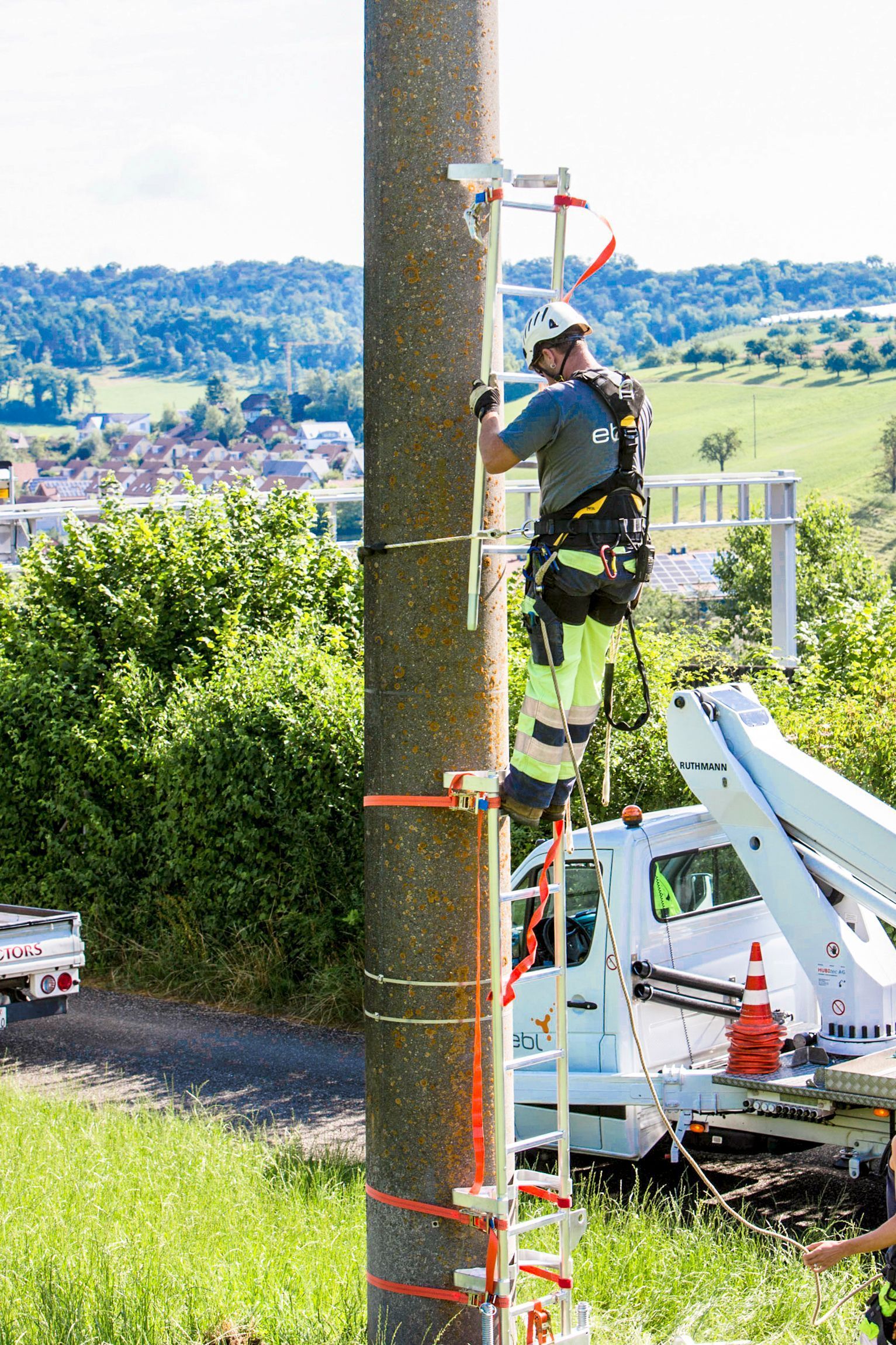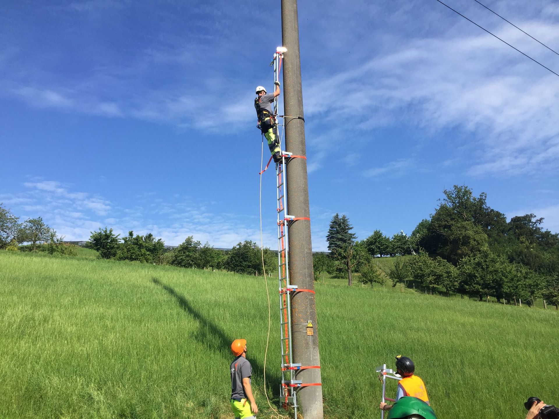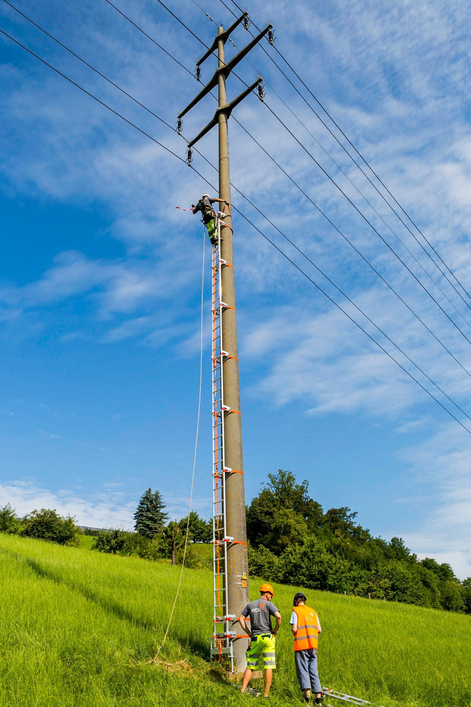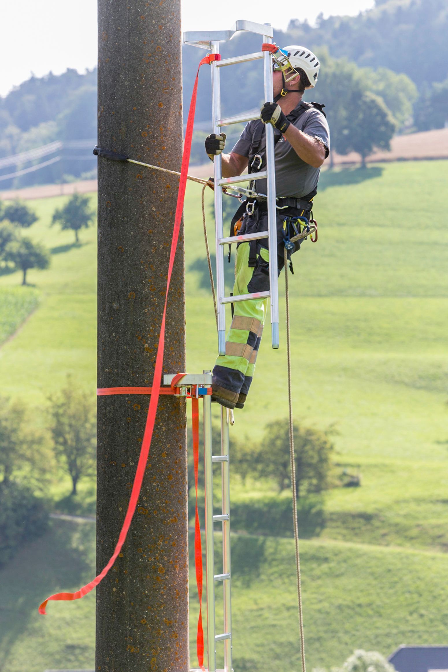 Die Gebrüder Schlumpf AG hat ein modulares System für eine Mastleiter entwickelt, die bei Servicearbeiten auf Betonmasten verwendet werden.