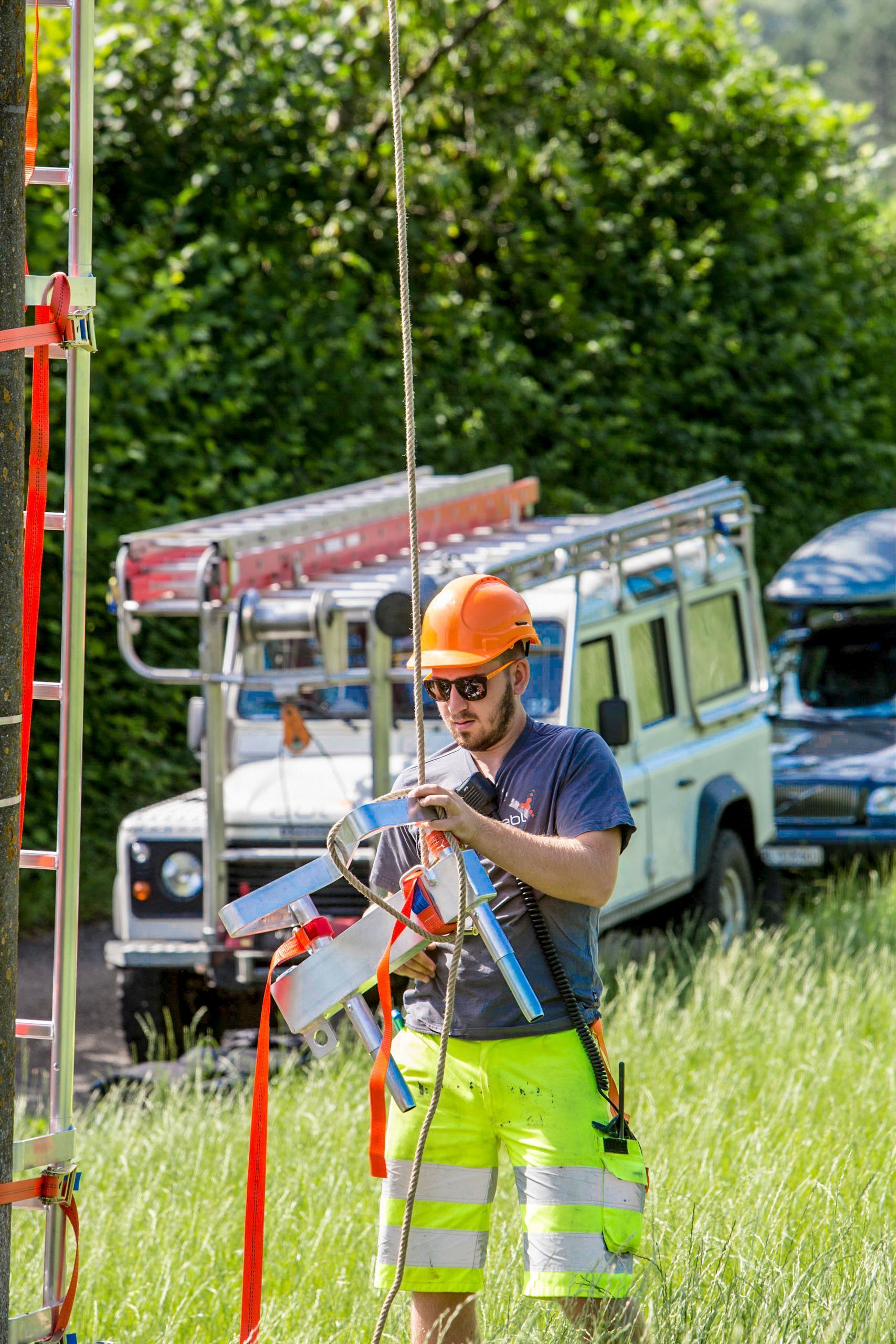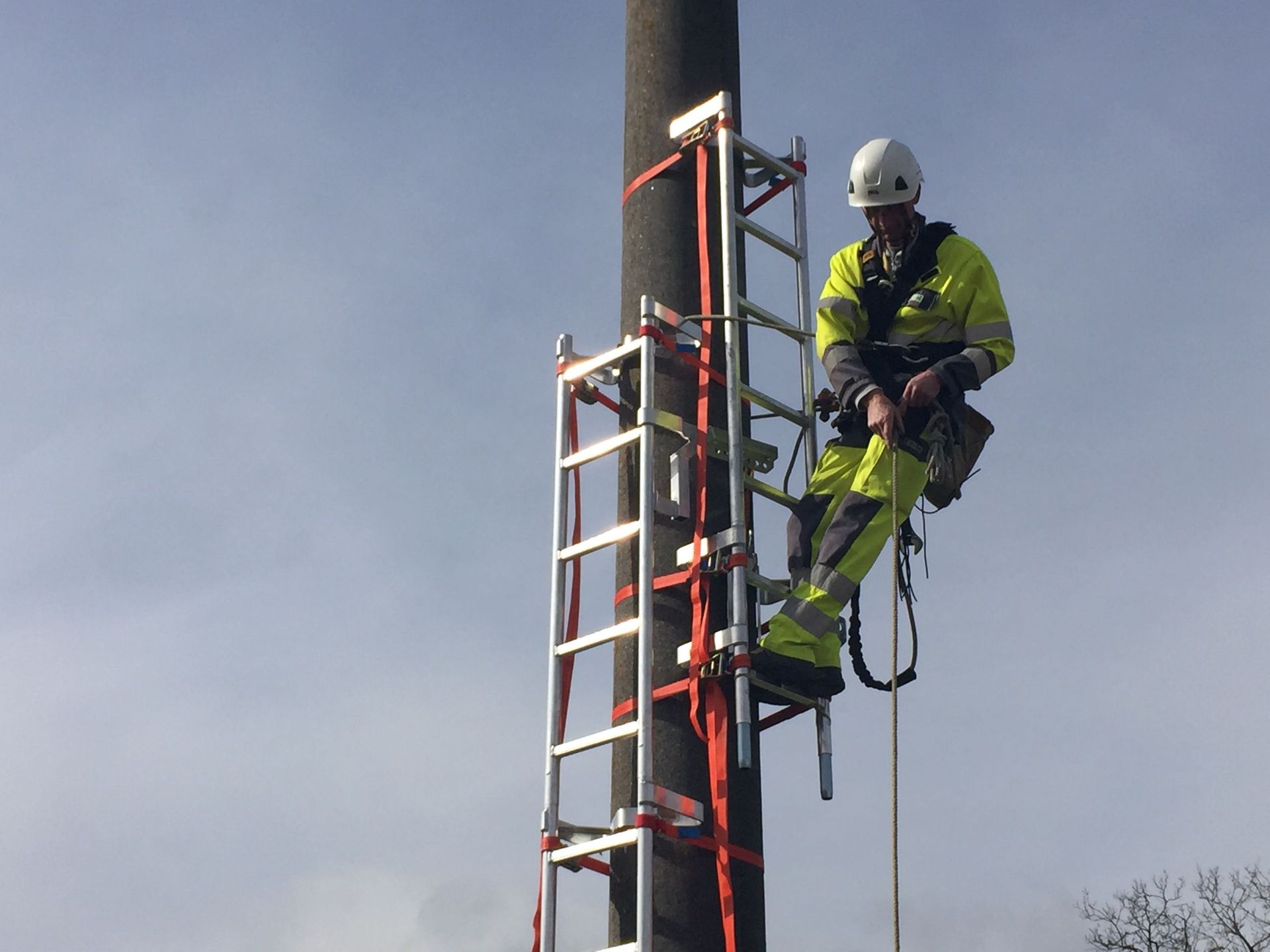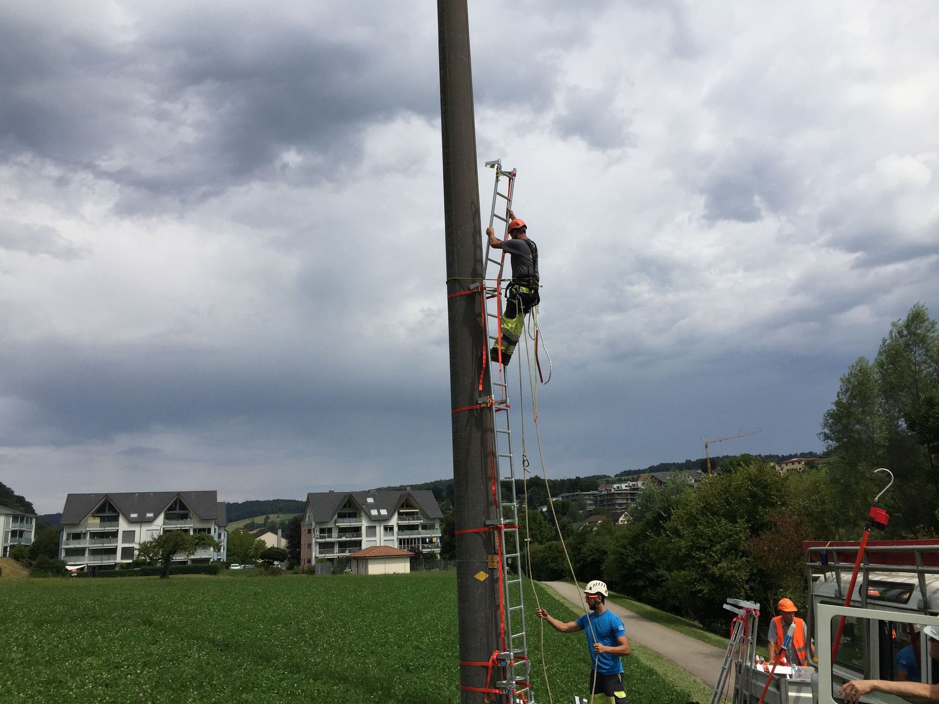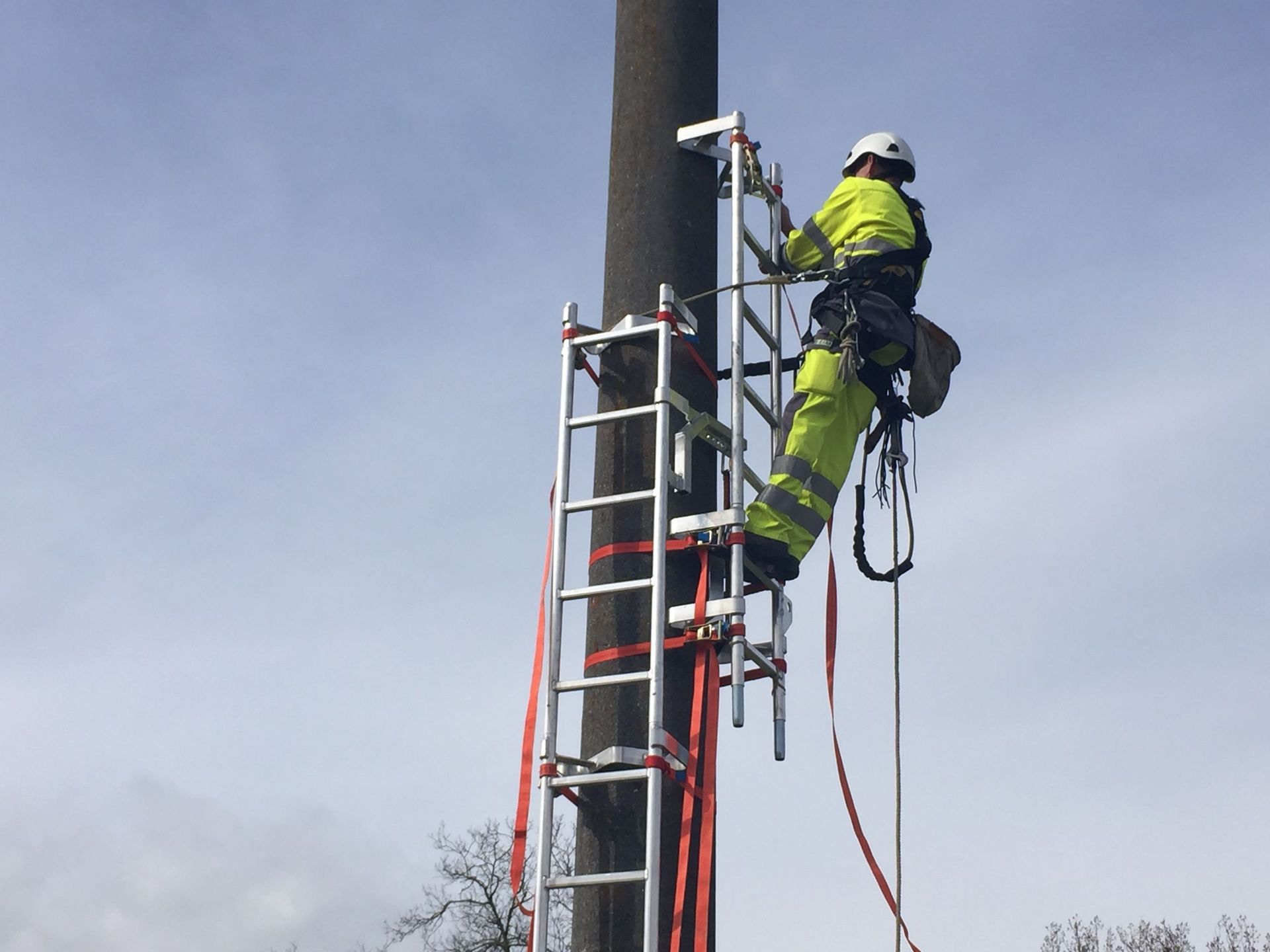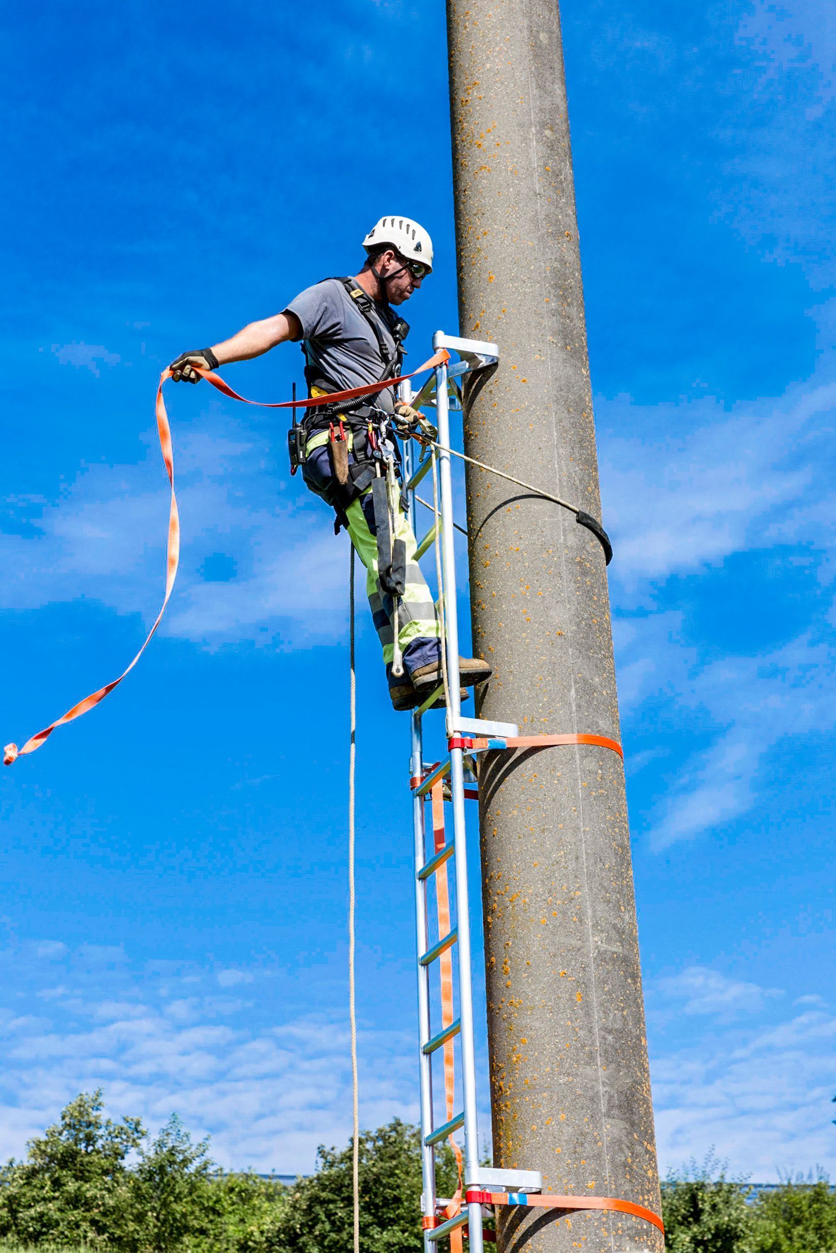 Die Gebrüder Schlumpf AG hat ein modulares System für eine Mastleiter entwickelt, die bei Servicearbeiten auf Betonmasten verwendet werden.